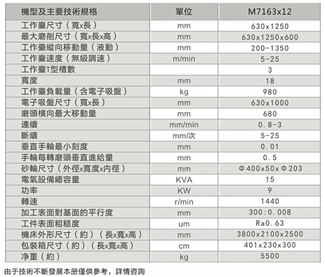 1、本機(jī)床屬于重切削磨床,適用于機(jī)械制造、模具等行業(yè)的平面磨削??赡ハ麂摷?、鑄件及有色金屬等材料。工件可直接固定在工作臺(tái)面上或放在電磁吸盤(pán)上磨削。